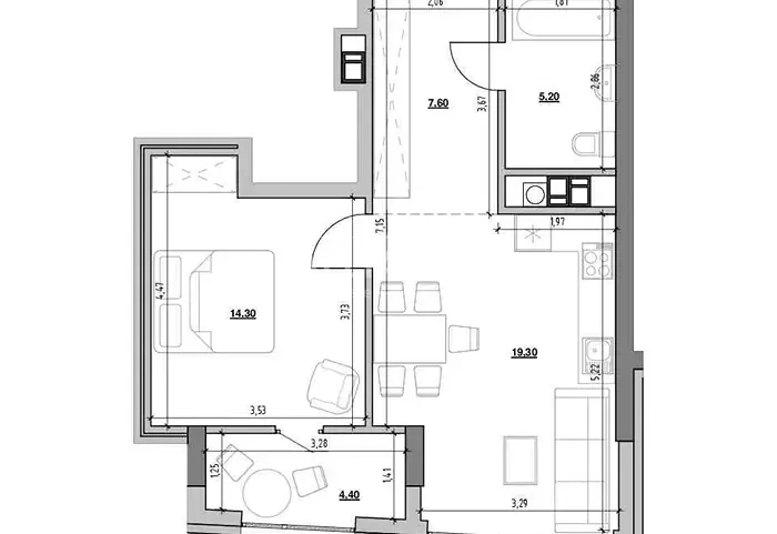 1-кімнатна квартира 46.5 м² з панорамними вікнами — без комісії