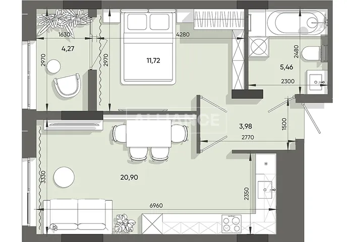 Продаж квартири 60 м² кухня студія + спальня ЖК Америка