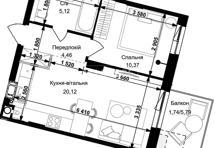 Продаж 1 км квартири