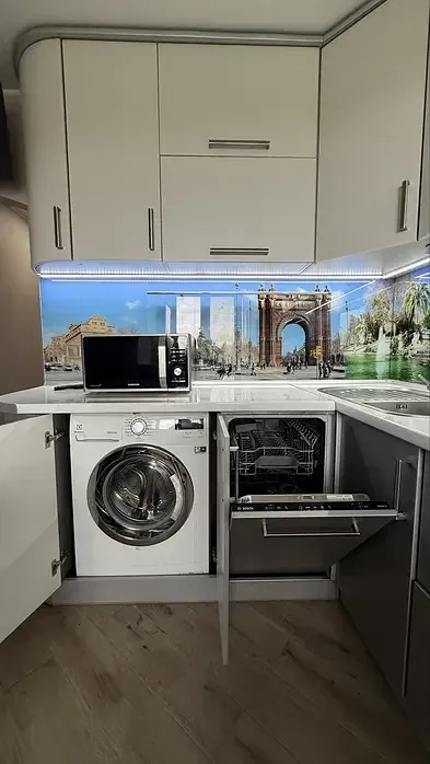 Меблі, побутова техніка: посудомийна і пральна машини, холодильник, мікрохвильова піч, варильна поверхня, духовка, кондиціонер, 3 телевізори — все, що на фото, входить у вартість.