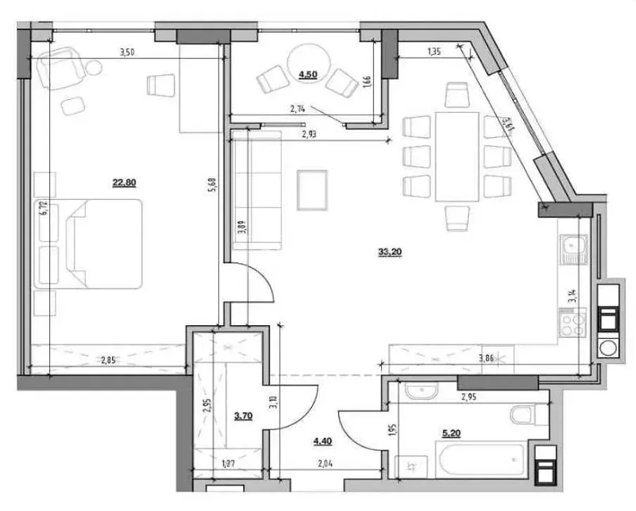 Велика площа — фактично формат 1+ (можливість перепланування в 2-кімнатну)