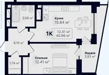 Простора кухня 15.84 м² з виходом на балкон 2.83 м²