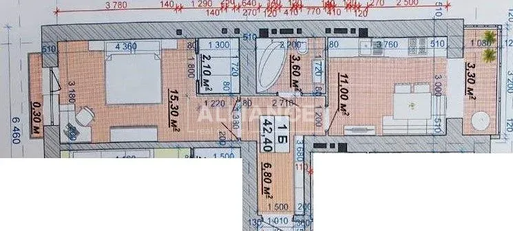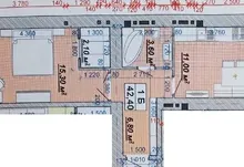 Квартира повноцінна не мансарда, розташована на 4-му поверсі 14-ти поверхового будинку, загальна площа 42.4 м.кв.