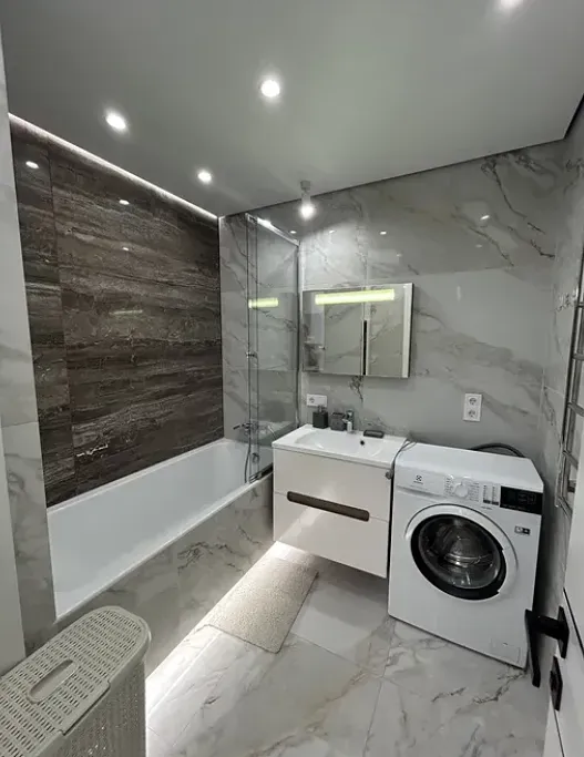 Квартира повністю мебльована та оснащена якісною побутовою технікою: посудомийна машина, варильна поверхня, духова шафа, мікрохвильова піч, холодильник, пральна і сушильна машини, телевізор.