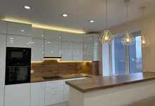 Простора прихожа, санвузол та велика кухня студія (зона для відпочинку та обідня)