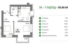• Планування: кухня з французьким балконом, кімната з лоджією та ще одна кімната;