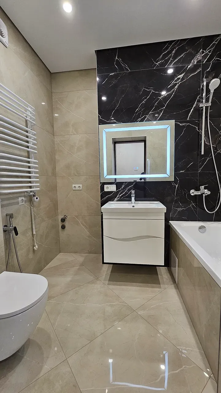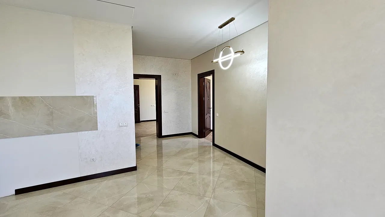 У квартирі зроблено сучасний ремонт, поставлена дорога італійська плитка, паркетна дошка. Велика панорамна лоджія, теплий монтаж вікон, підігрів підлоги у мокрих зонах та кухні.