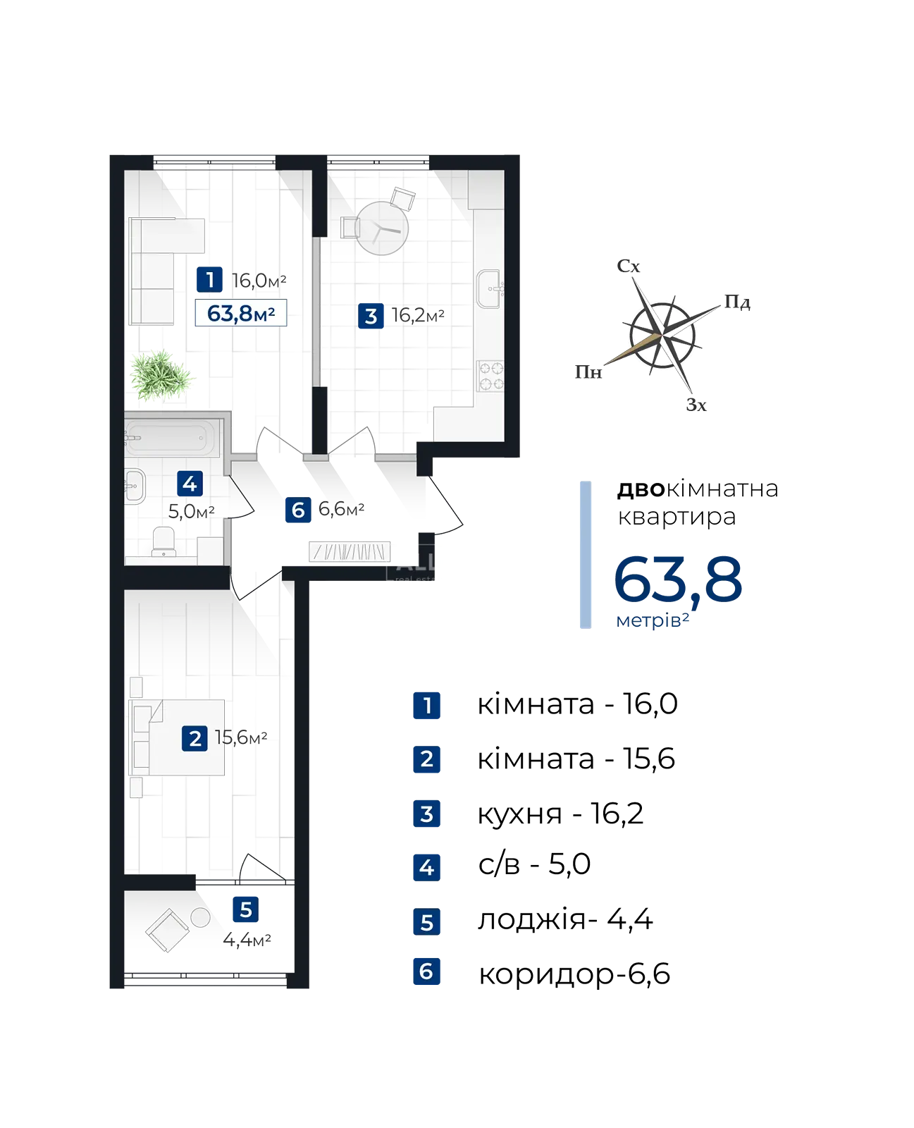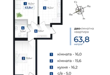• Площа: 63.8м2