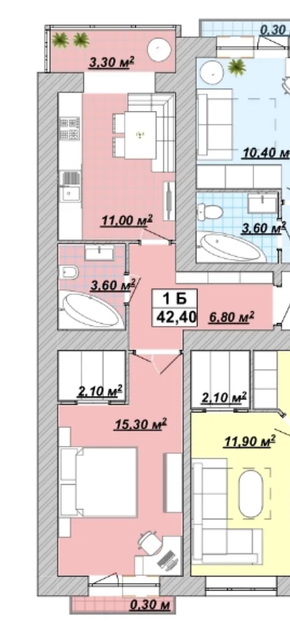 Чудове планування з панорамною лоджією на кухні , та балкони і гардеробною в кімнаті