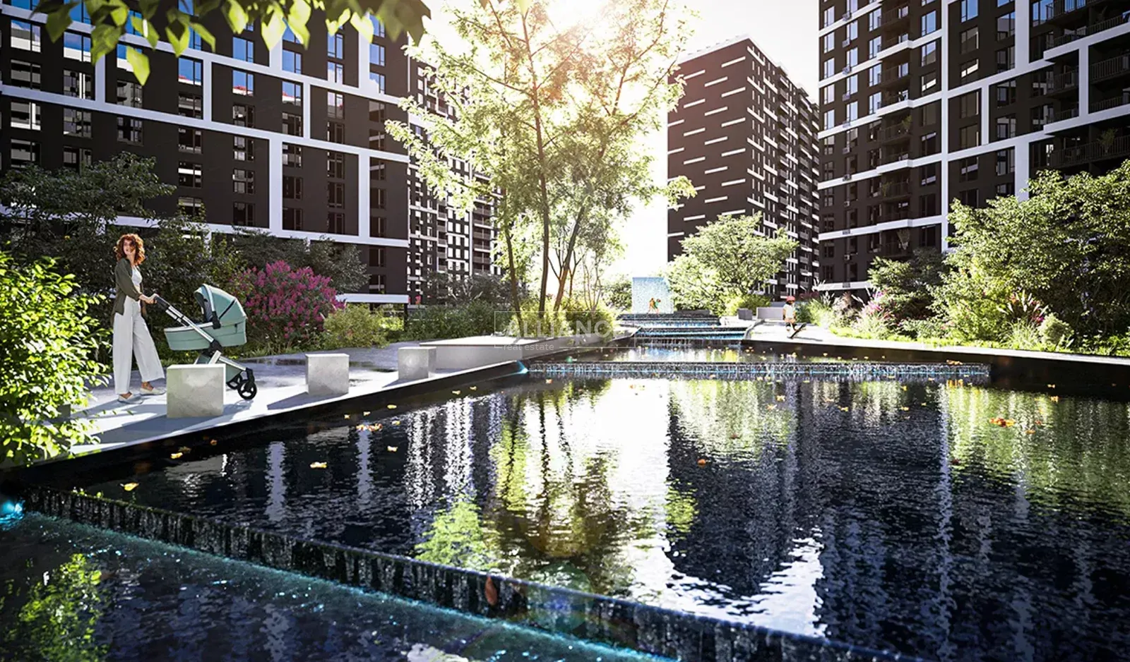 Пішохідні зелені зони та власний міні-парк для прогулянок і відпочинку.