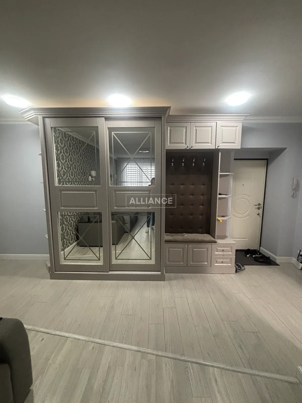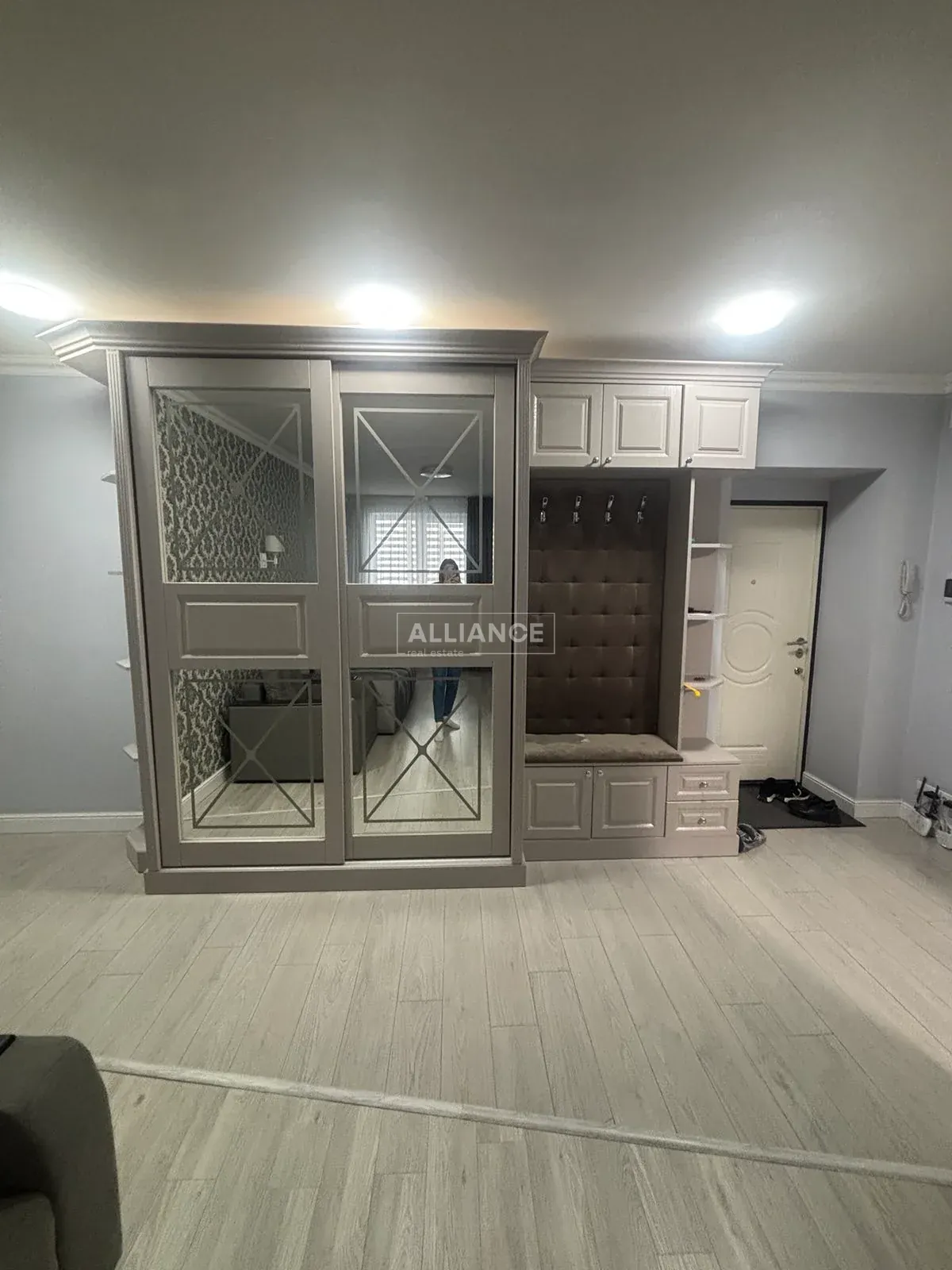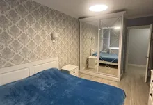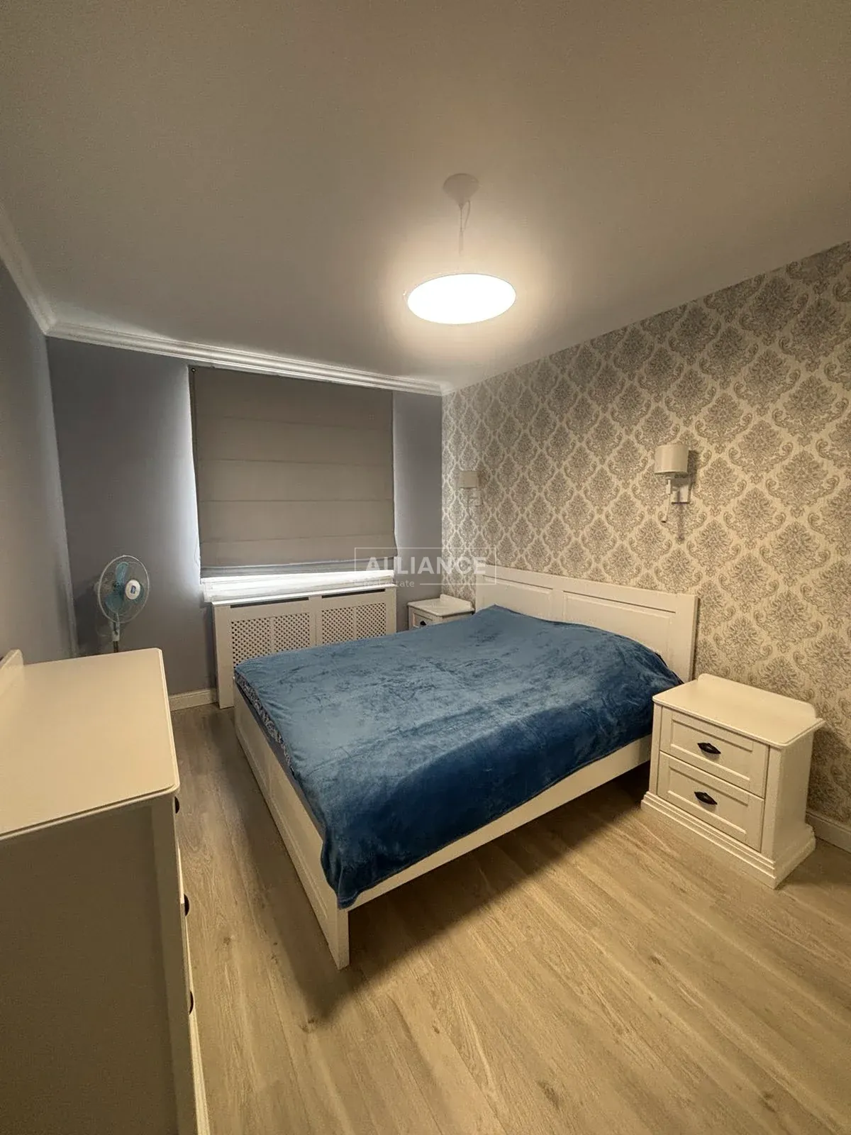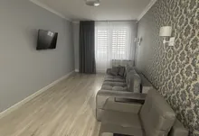 Квартира має дві кімнати , велику закриту лоджію. В спальні двоспальне дліжко, приліжкові тумби , комод, та шафакупе. В вітальні диван який розкладається та мяге крісло.
