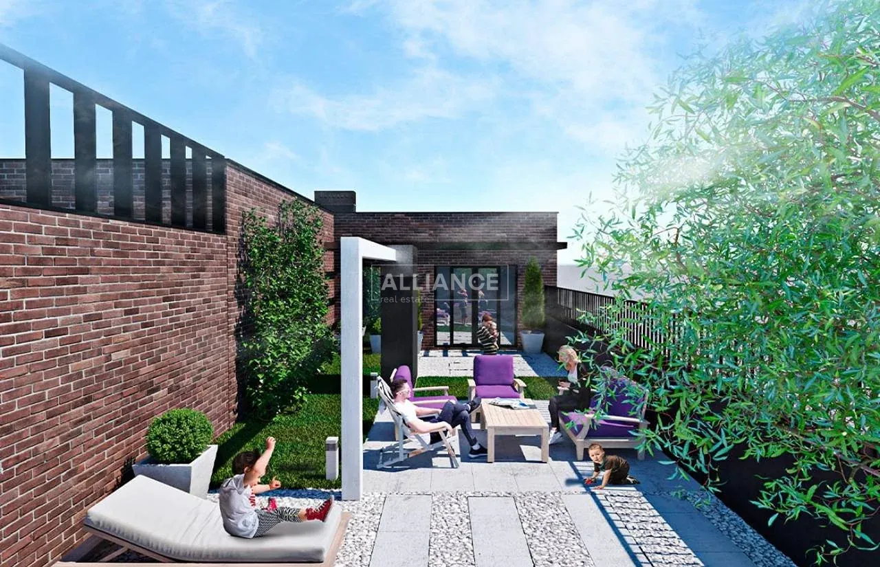 Загальна площа -98 м², житлова -54 м², зручне правильне планування, три окремі спальні, велика кухня-студія, балкон та величезна тераса.