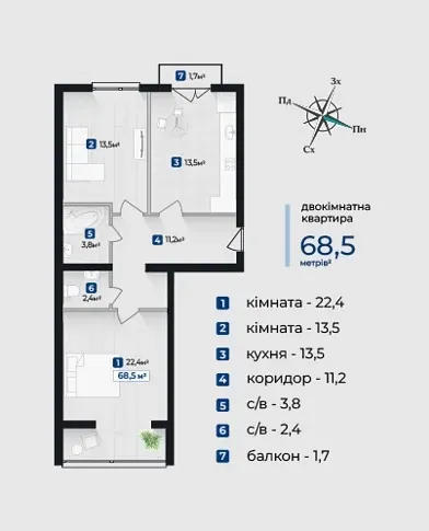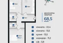• Планування: дуже функціональне двостороннє планування; простора кухня з балконом; кімната з лоджією;