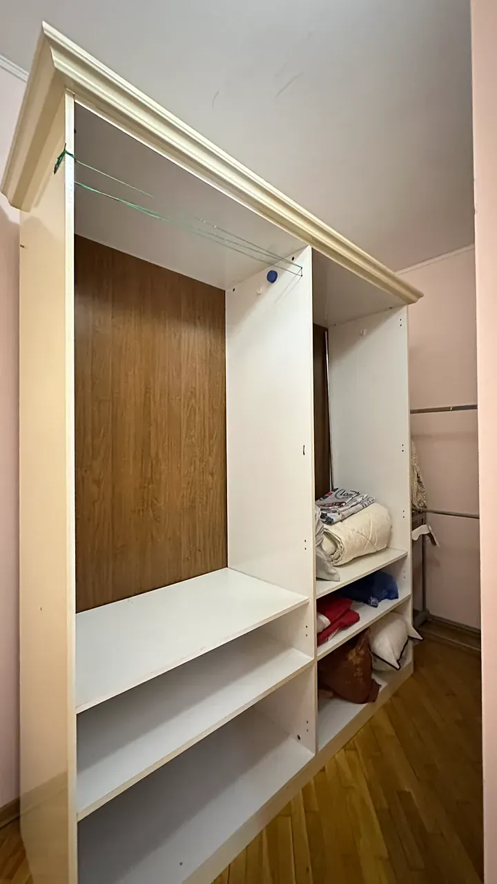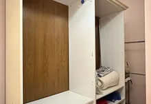 У спальні є велике двоспальне ліжко з приліжковими тумбочками, також у спальні знаходиться окрема гардеробна кімната з сейфом та рушникосушкою.