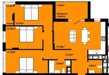 Три окремі кімнати + простора кухня-студія площею 24 м²