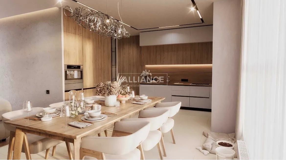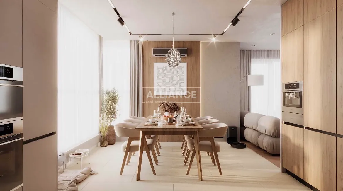 • Кухня-студія з великим панорамним алюмінієвим вікном та видом на парк