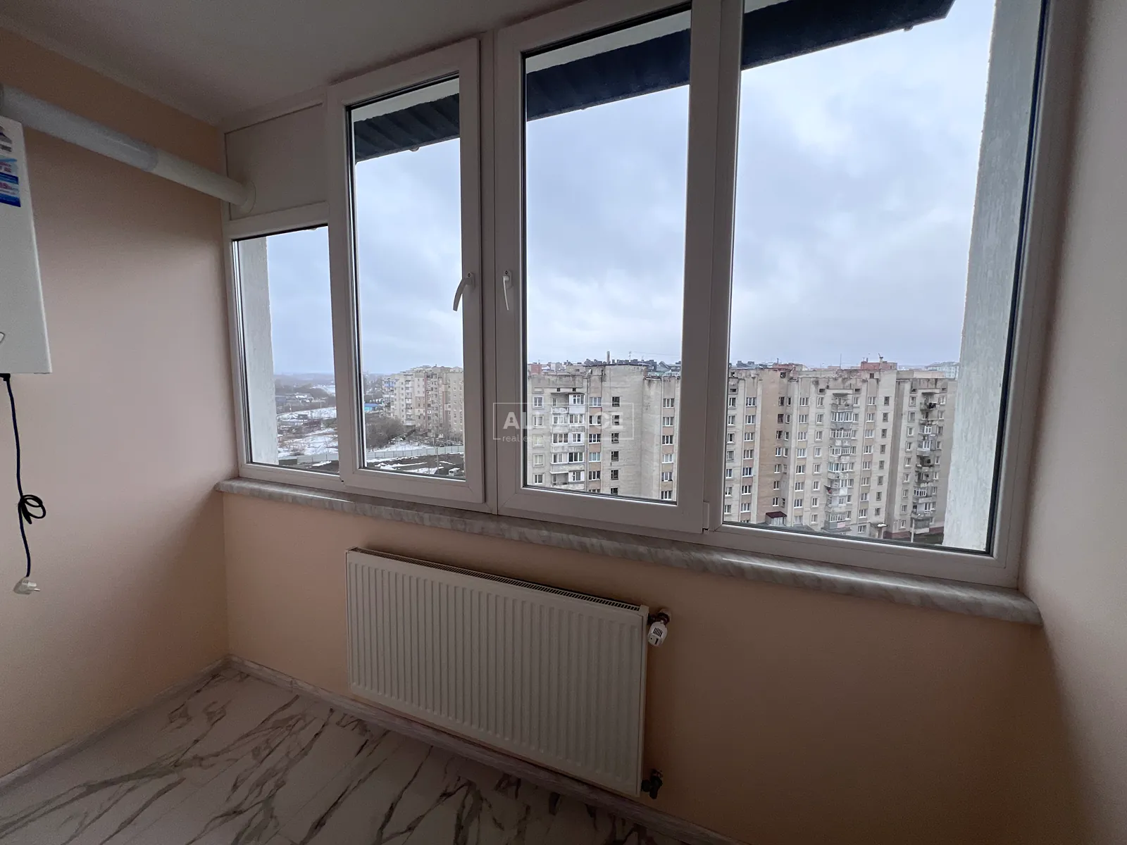 З квартири відкривається панорамний вид на місто та гори.