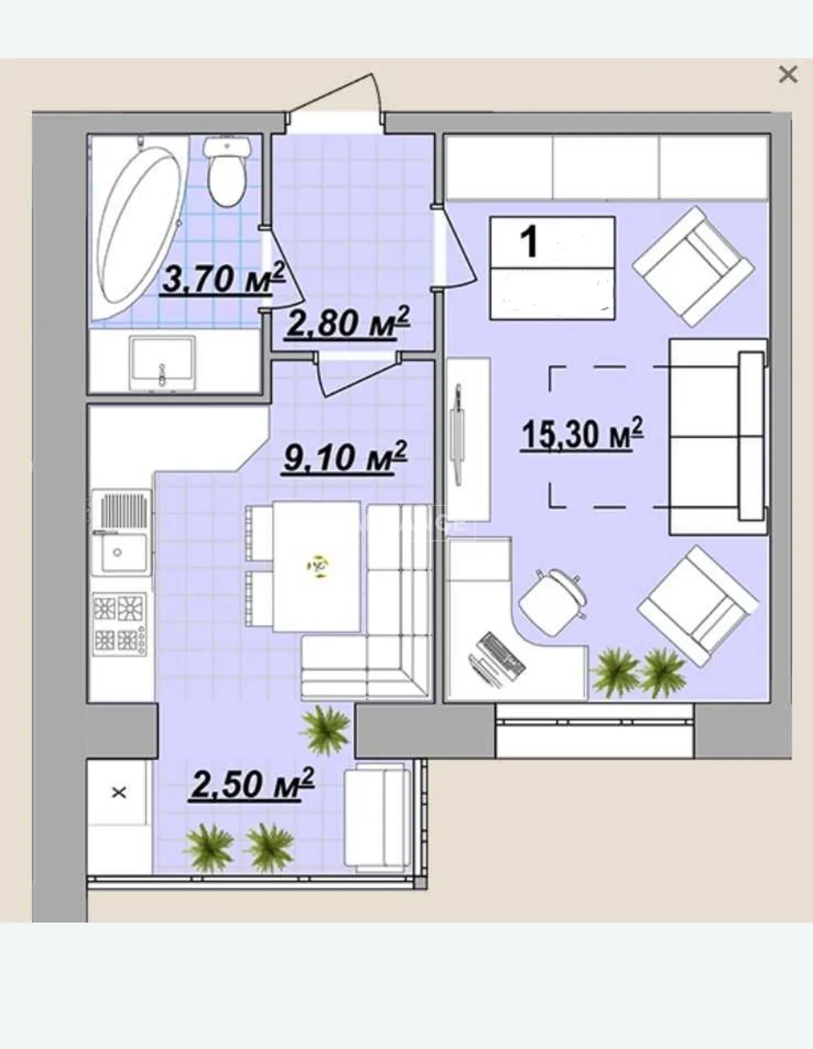 Площа 36м2