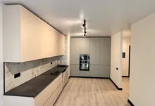 Квартира світла за рахунок великих панорамних енергоефективних вікон.