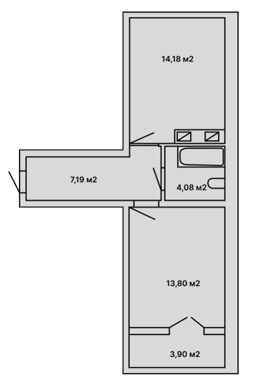 Гарне двостороннє планування, з окремою кімнатою і кухнею-вітальнею