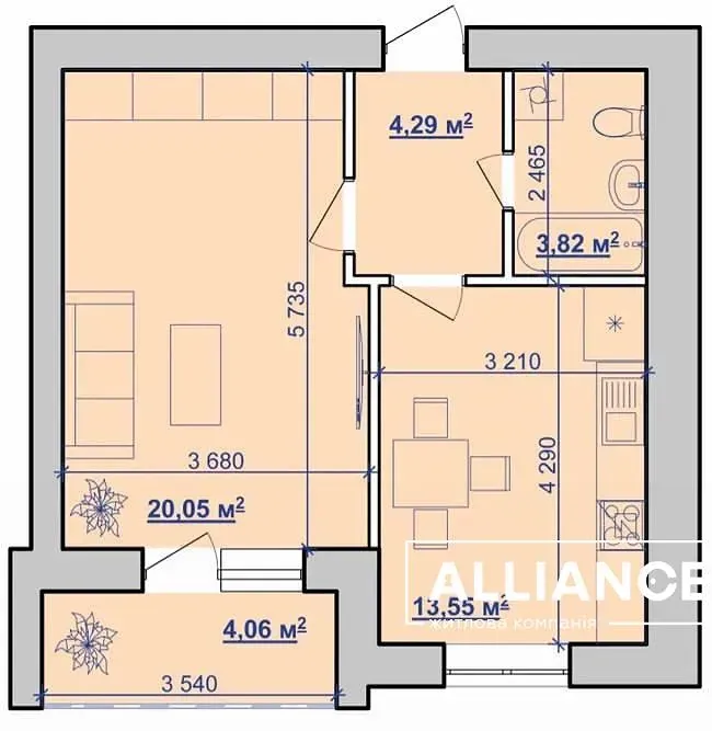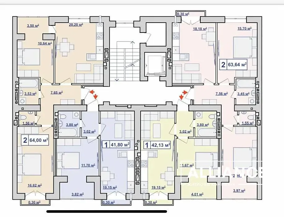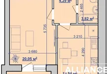 Квартира розташована на 2-му поверсі 9-ти поверхового будинку. Загальна площа квартири 44.2 м.кв.