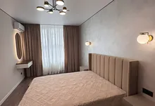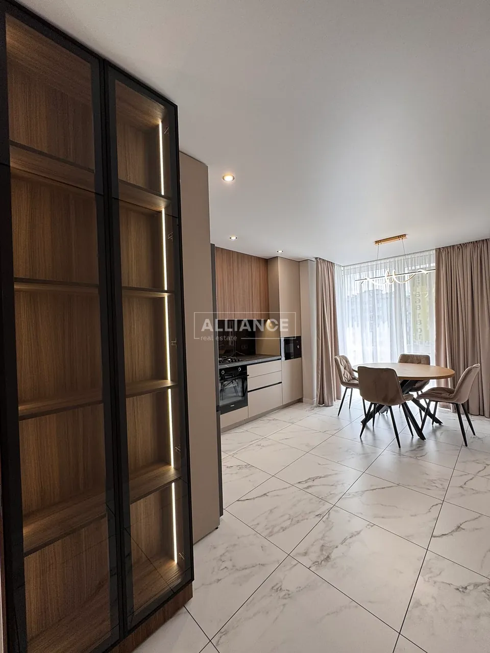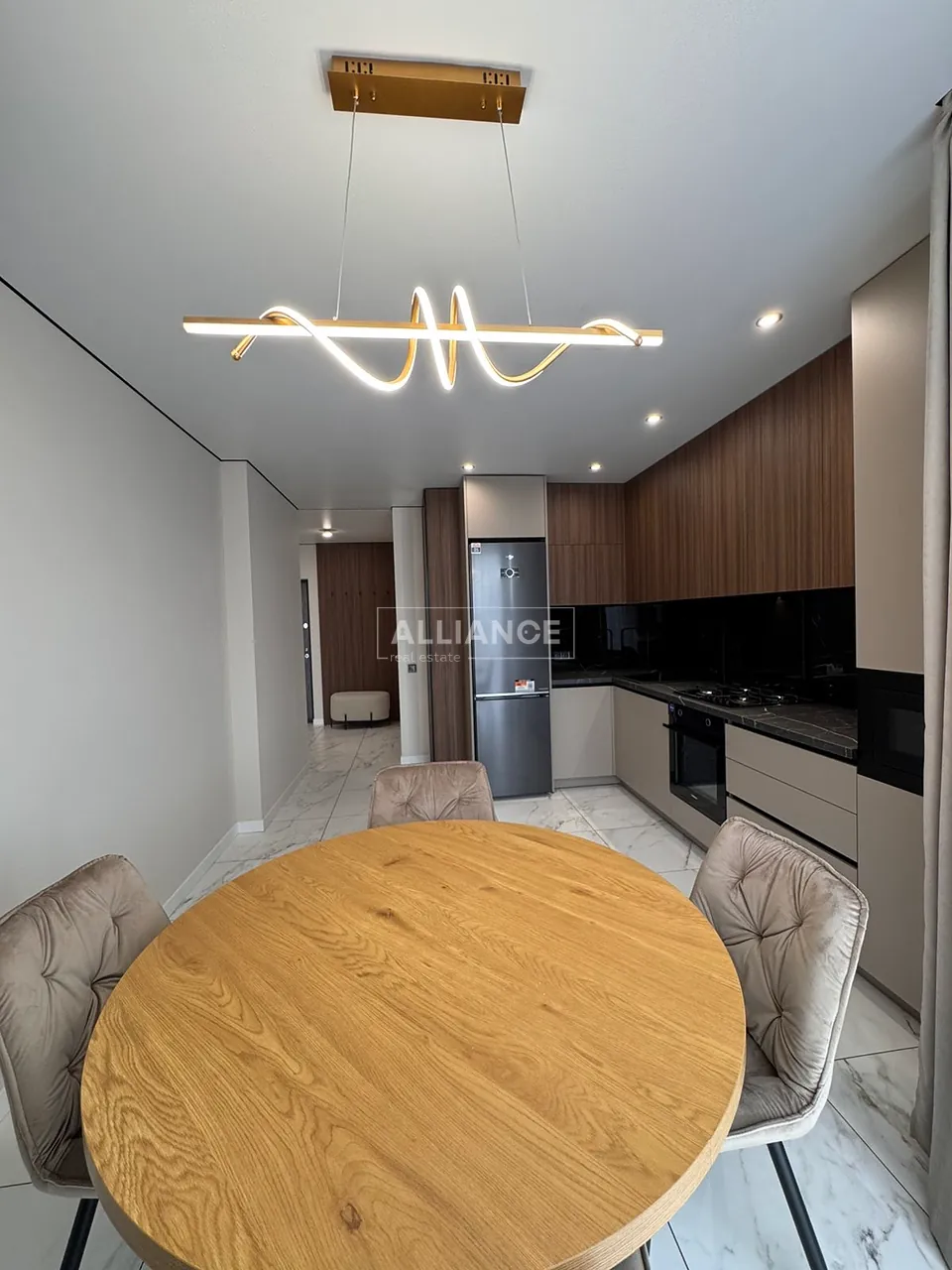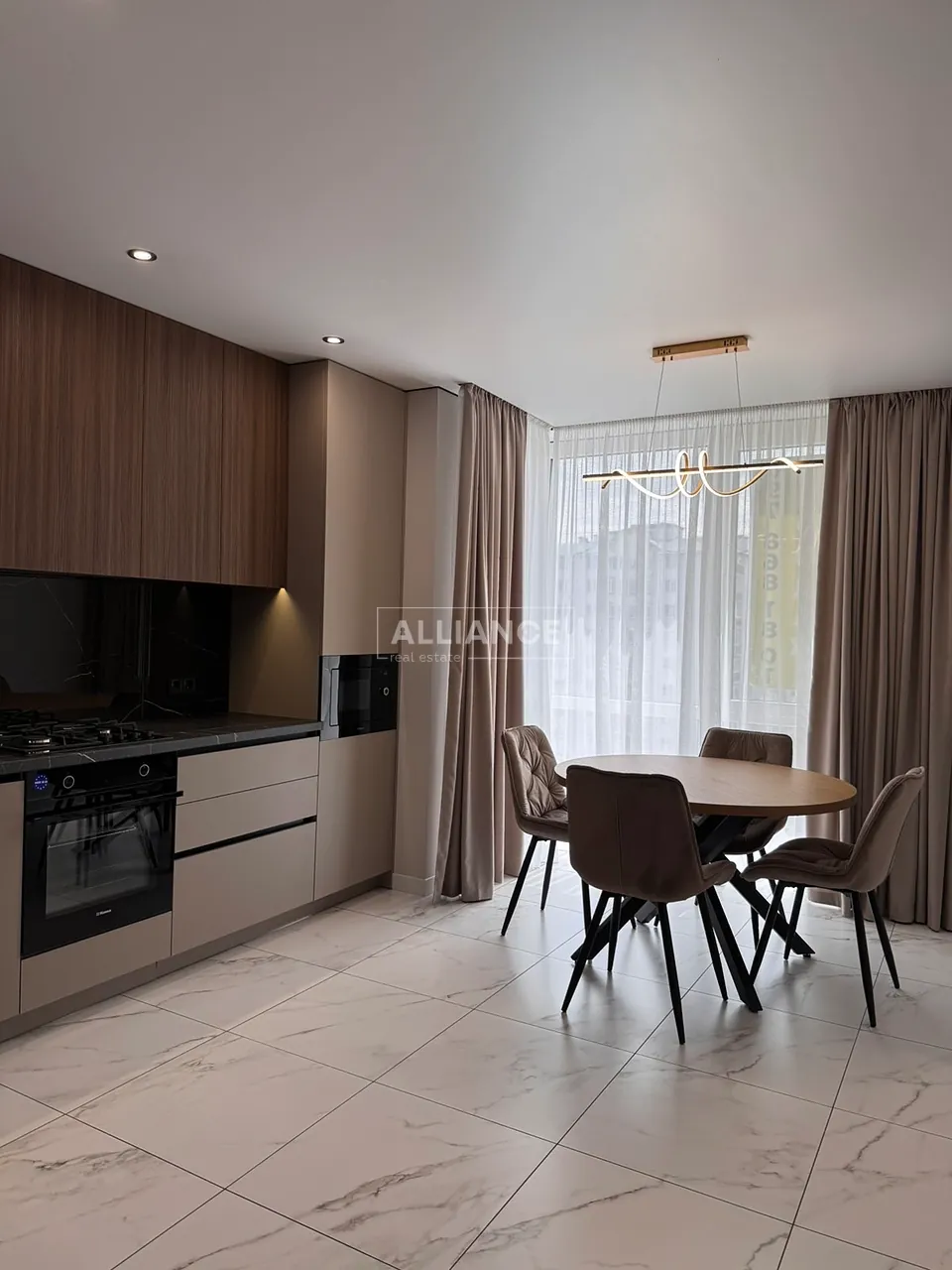Стильна 2-кімнатна квартира з якісним дизайнерським ремонтом. Всі меблі та техніка залишаються — заїжджай і живи!Вдале планування, простора кухня, панорамні вікна, багато світла.