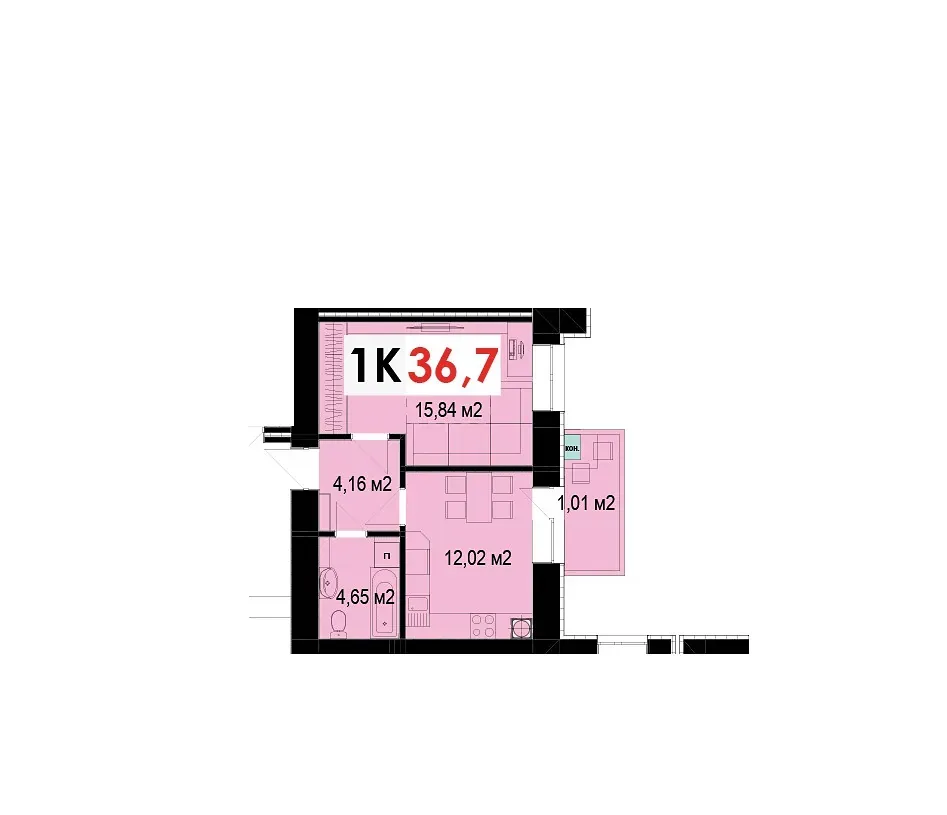 Продається затишна квартира площею 36.7 м на 7-му поверсі.