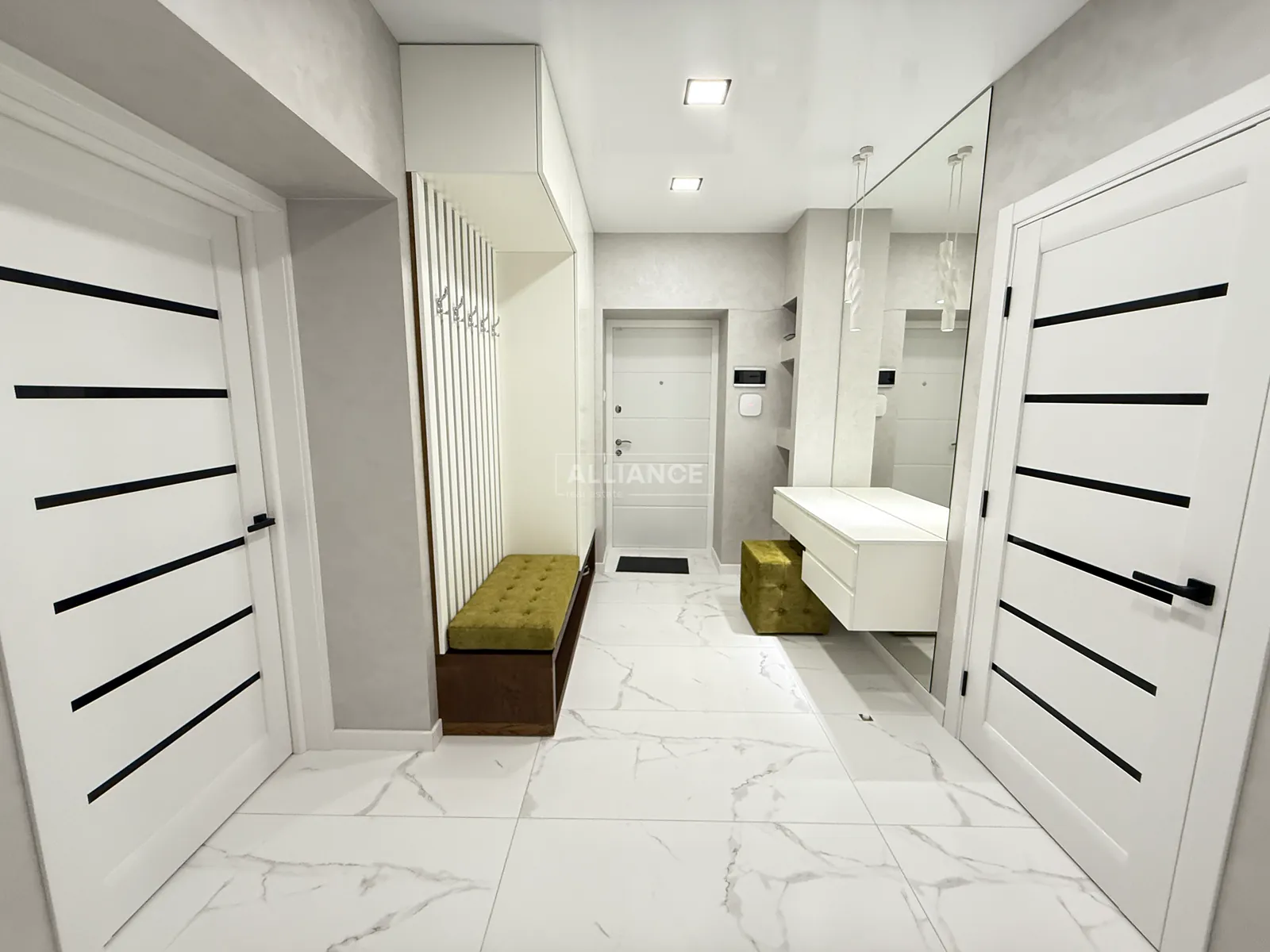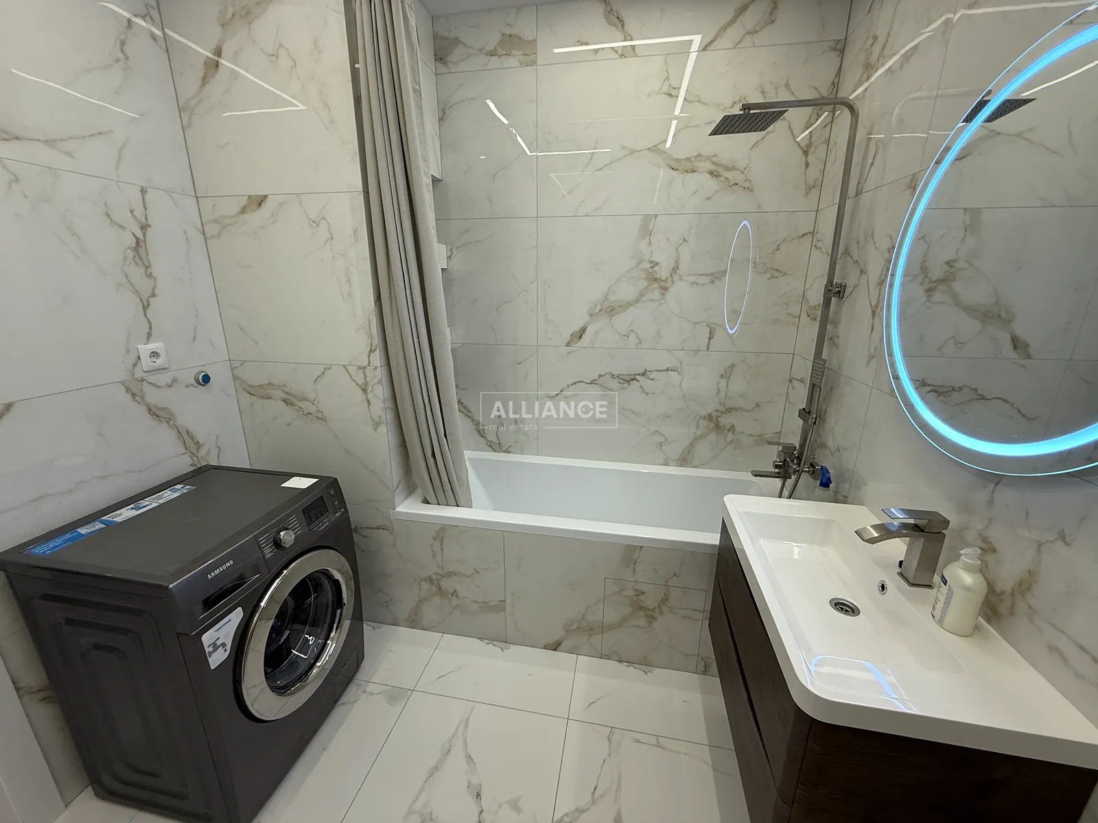 Квартира повністю укомплектована необхідною технікою: посудомийна машина, холодильник, мікрохвильова піч, духова шафа.