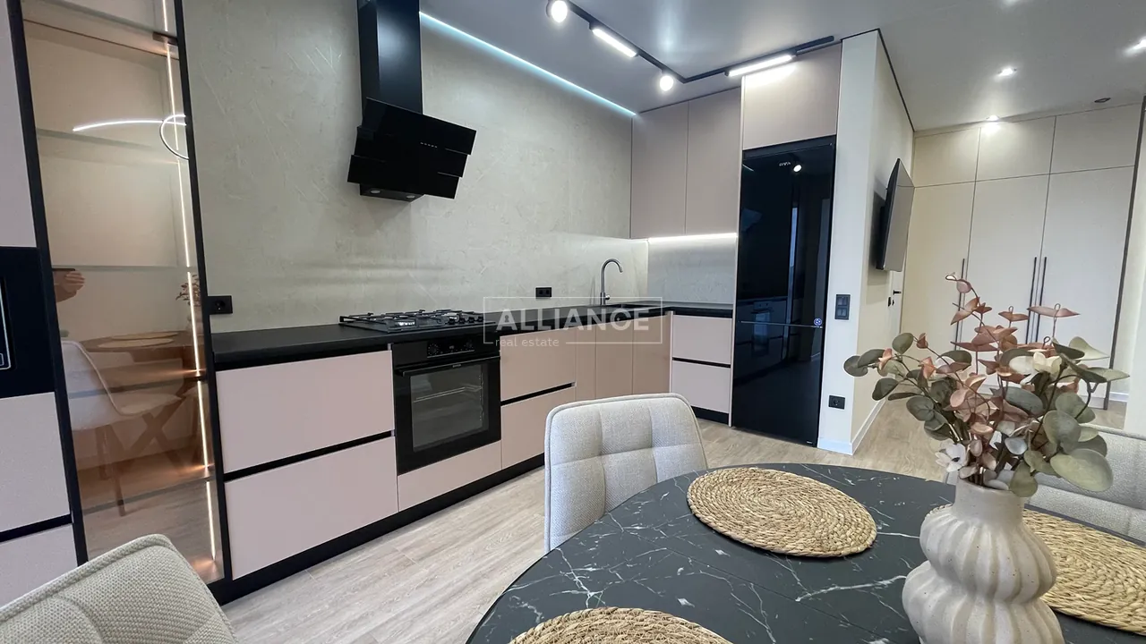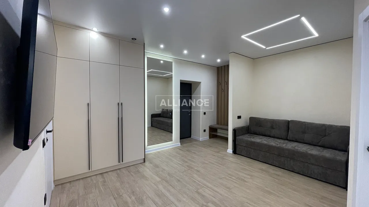 Пропонується до продажу простора однокімнатна квартира з функціоналом півторакімнатної, виконана у сучасному дизайнерському стилі.