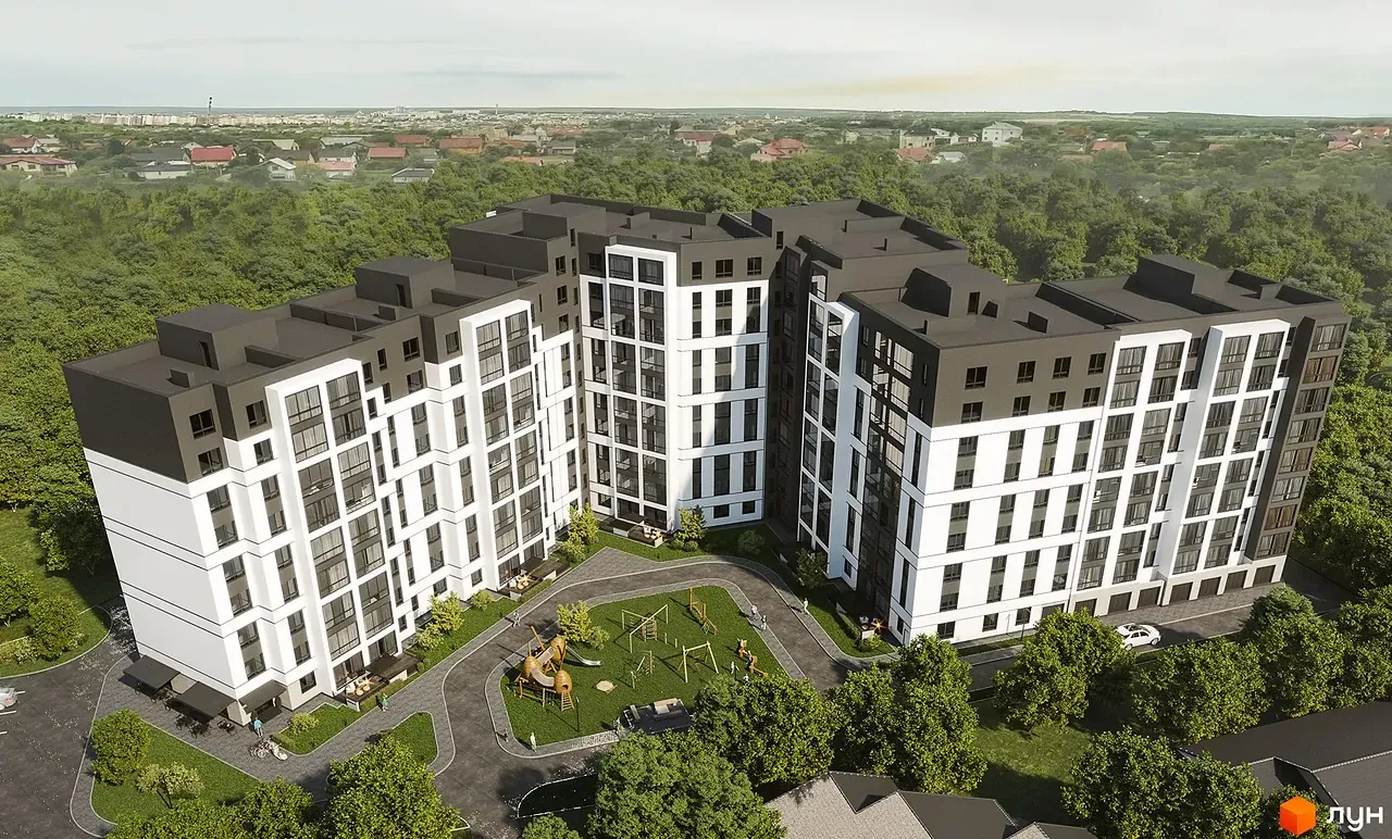 Двір без авто, окремий паркінг, дитячий та спортивний майданчики. Закрита територія з цілодобовим відеонаглядом.