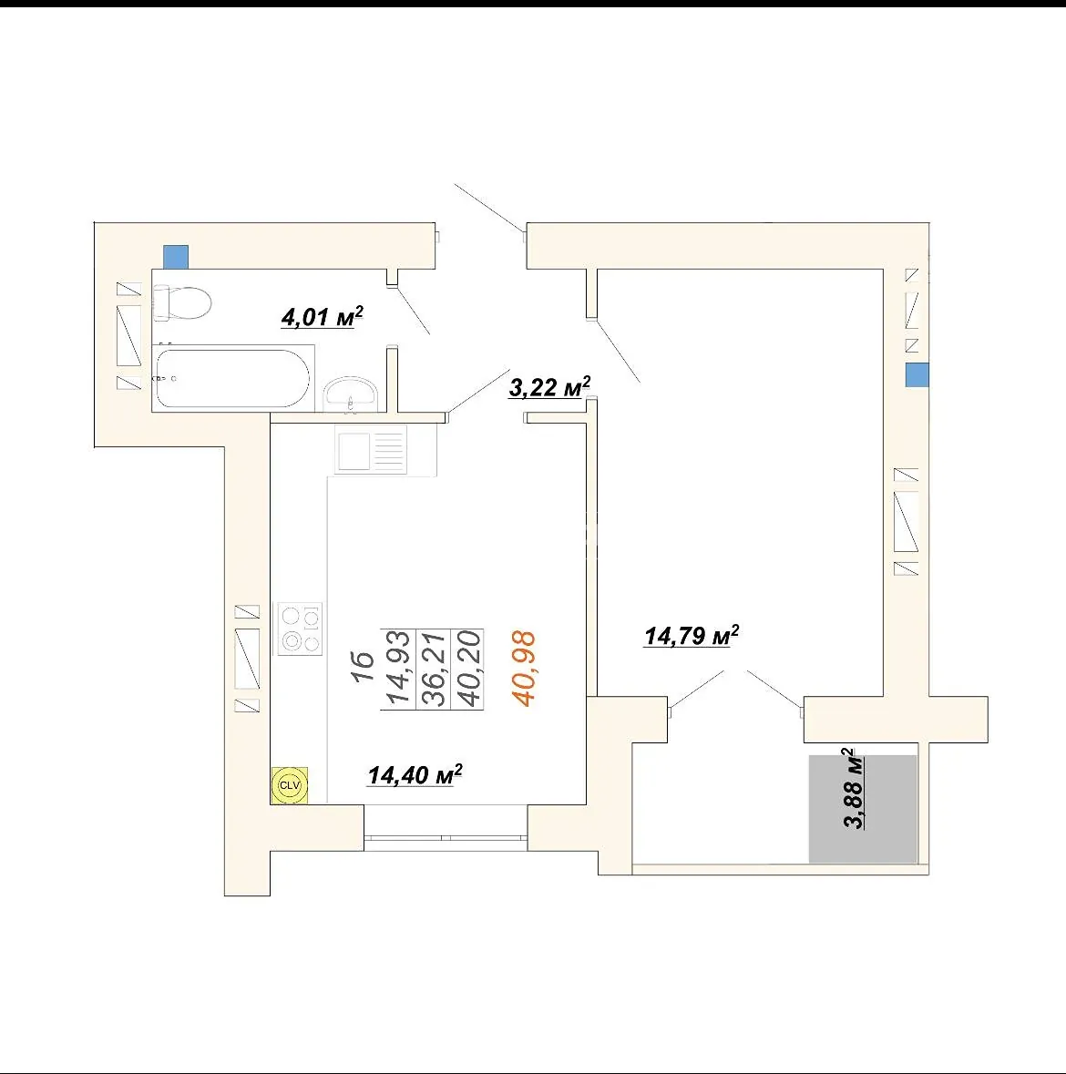 Площа — 40,2 м², ідеальний 3 поверх із 10.