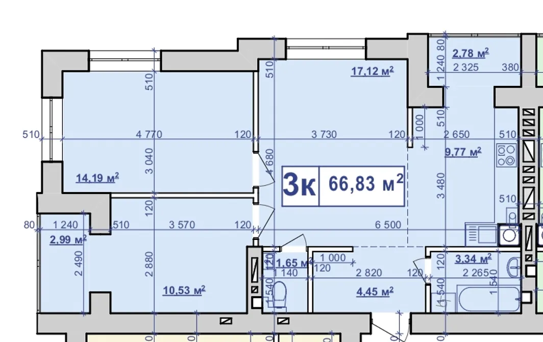 Площа 67м2 , можна перепланувати у двокімнатну кухню студію.