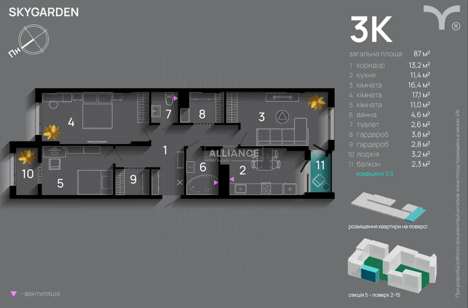 загальна площа — 87 м²