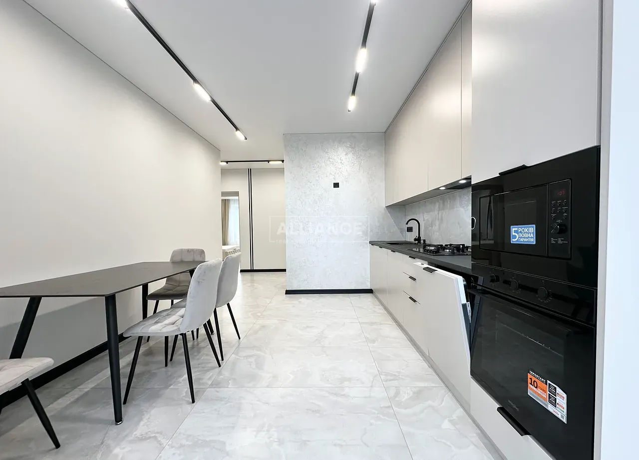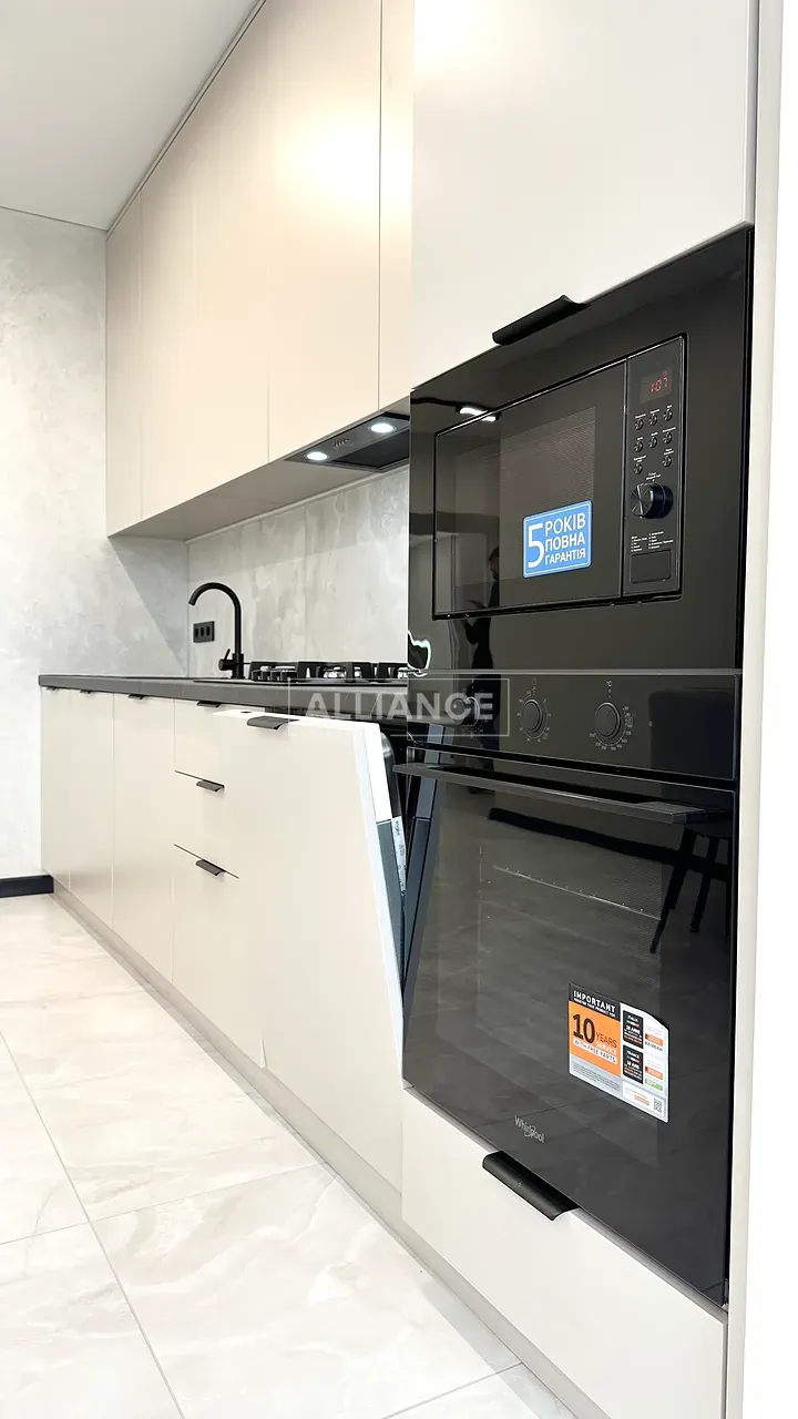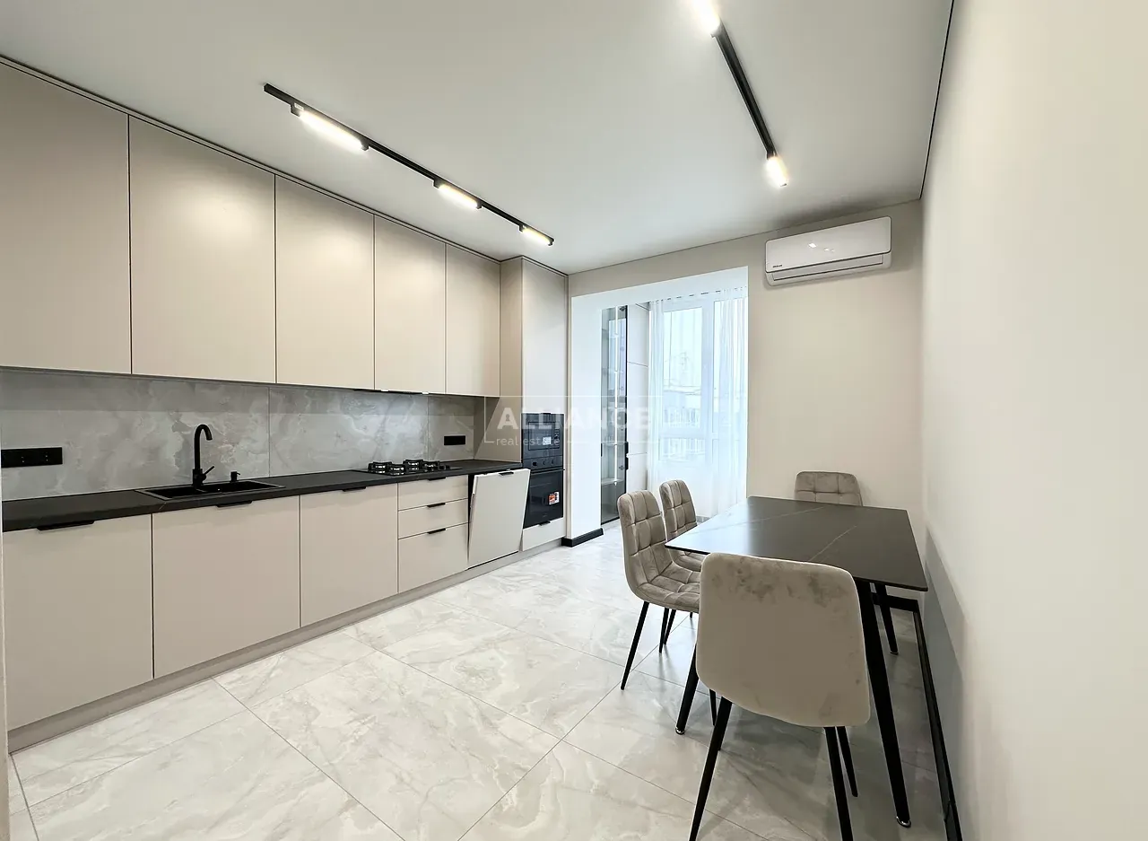 Квартира повністю укомплектована меблями та технікою. Вмонтований кондиціонер, який працює на обігрів та охолодження. На кухні встановлена велика посудомийна машинка. Спальні кімнати укомплектовані необхідними меблями. Є бʼюті зона.