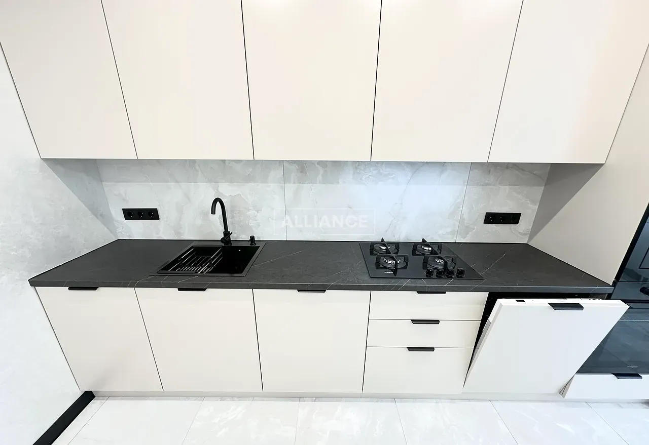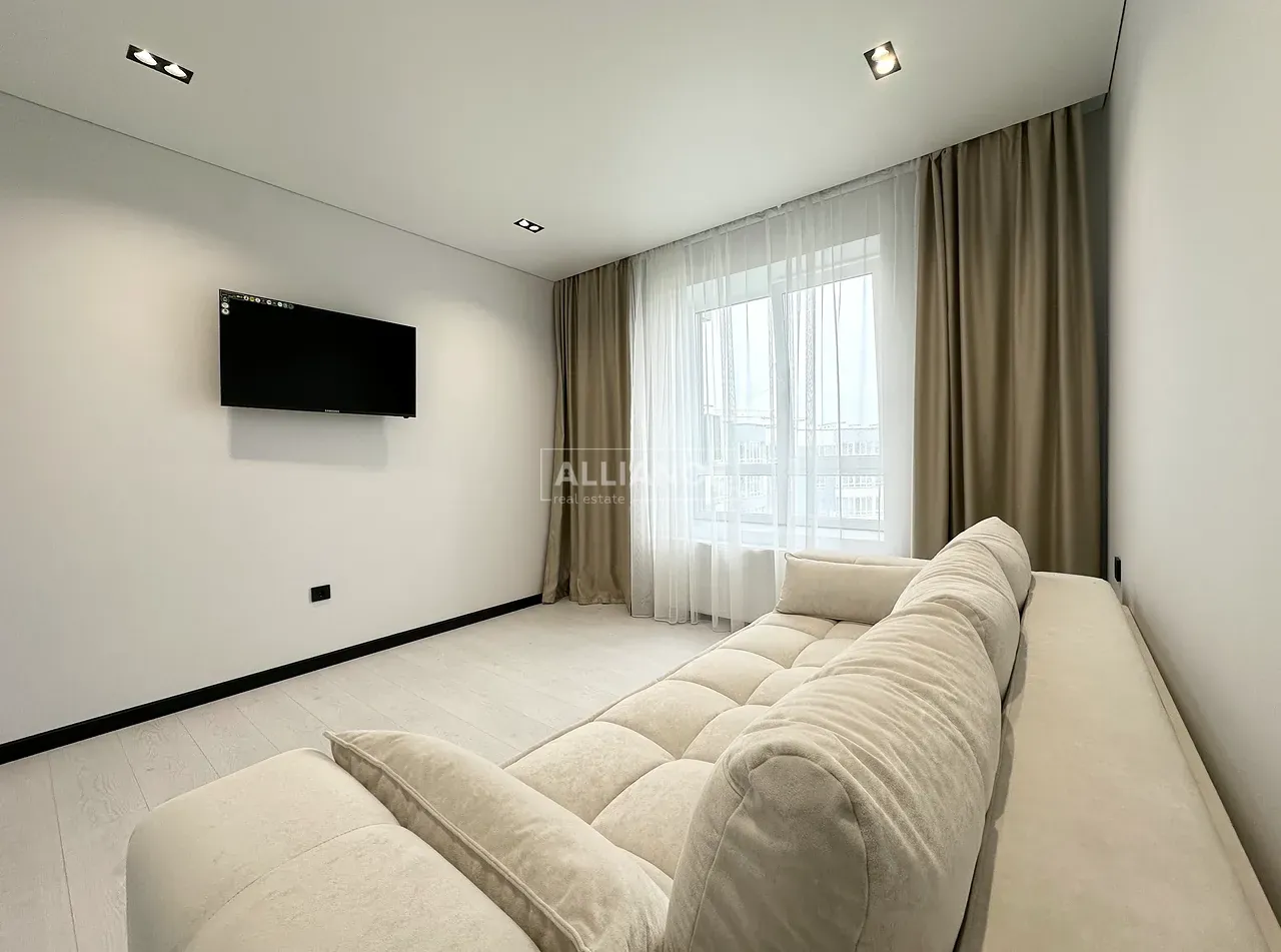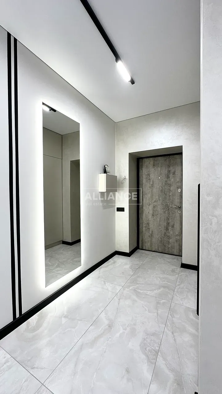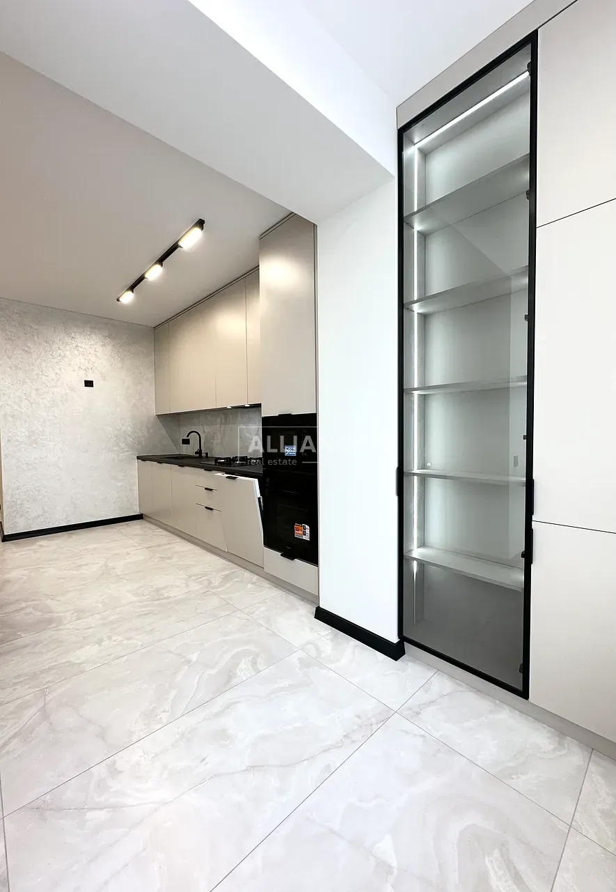 Квартира повністю укомплектована меблями та технікою. Вмонтований кондиціонер, який працює на обігрів та охолодження. На кухні встановлена велика посудомийна машинка. Спальні кімнати укомплектовані необхідними меблями. Є бʼюті зона.