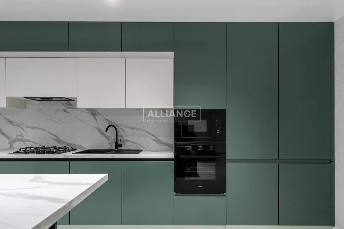 У квартирі роздільне планування: 2 спальні кімната та простора кухня студія з вбудованими якісними меблями і технікою.