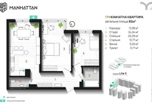 Кухня студія + 2 кімнати