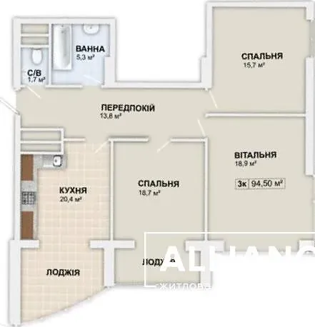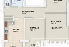 Квартира великої площі 94, 5м2, з двома лоджіями та гарним краєвидом.