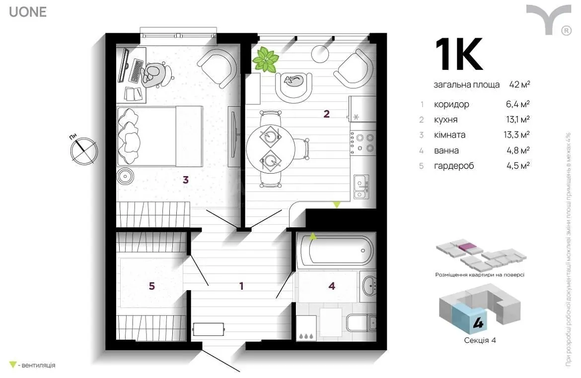 Продаж 1 кім. квартири ЖК U One. Будинок зданий, можна робити ремонт. Тепла квартира, з хорошим плануванням! Загальна площа 42 м.кв. Квартира знаходиться на 10/13 поверсі, внутрішня Деталі по телефону!