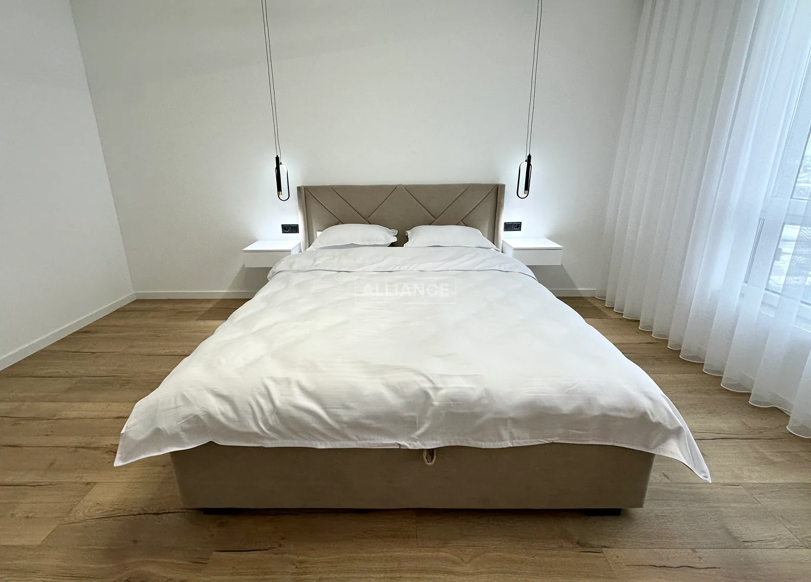 Окрема спальня кімната, гардеробна кімната, стильний санвузол та простора кухня.