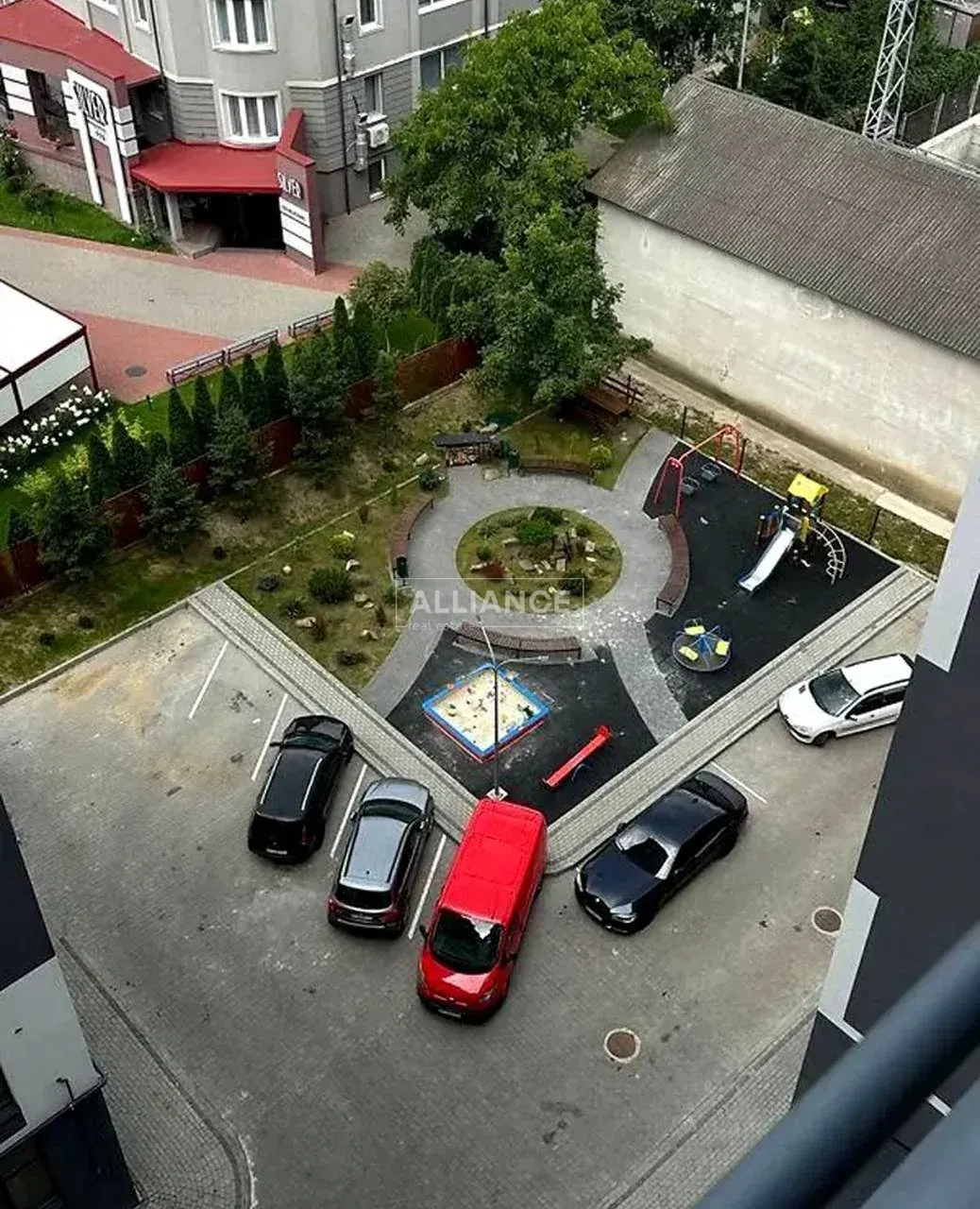 Для вашого комфорту: облаштована парковка, дитячий майданчик і зона барбекю у дворі.