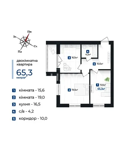 Пропонується до продажу простора 2-кімнатна квартира площею 65,3 м² у сучасному закритому житловому комплексі ЖК «Козацький», неподалік від Міське озеро та Центральний парк.
