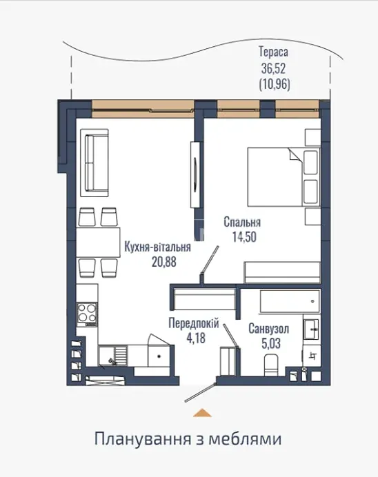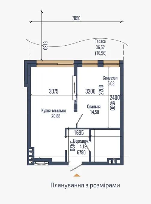 1-кімнатна з можливістю перепланування в 2-кімнатну
