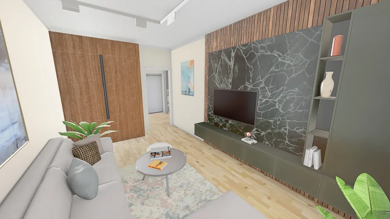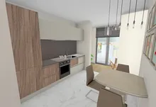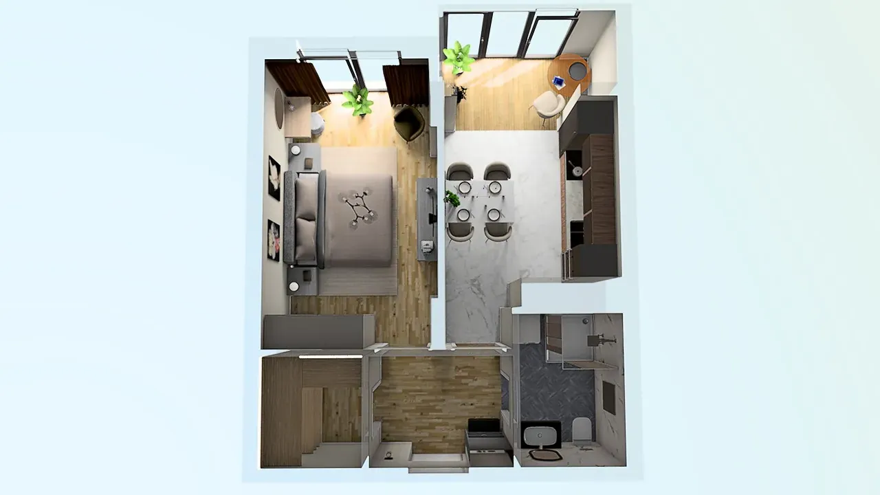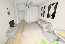 Квартра має функціональгне планування, з просторою кухнею, великим санвузлом та гардеробною кімнатою.