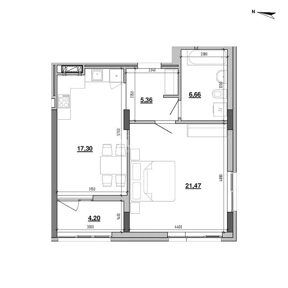 Пропонується до продажу простора 1-кімнатна квартира у сучасному житловому комплексі.