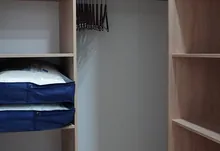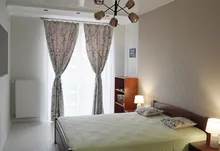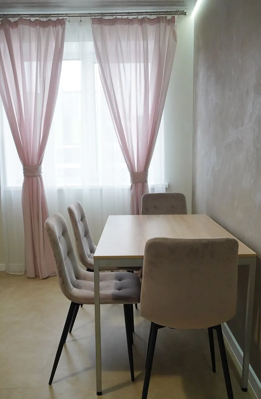 У кухні наявний обідній стіл із стільцями, у спальні встановлене велике двоспальне ліжко.