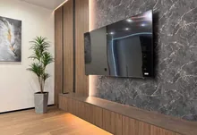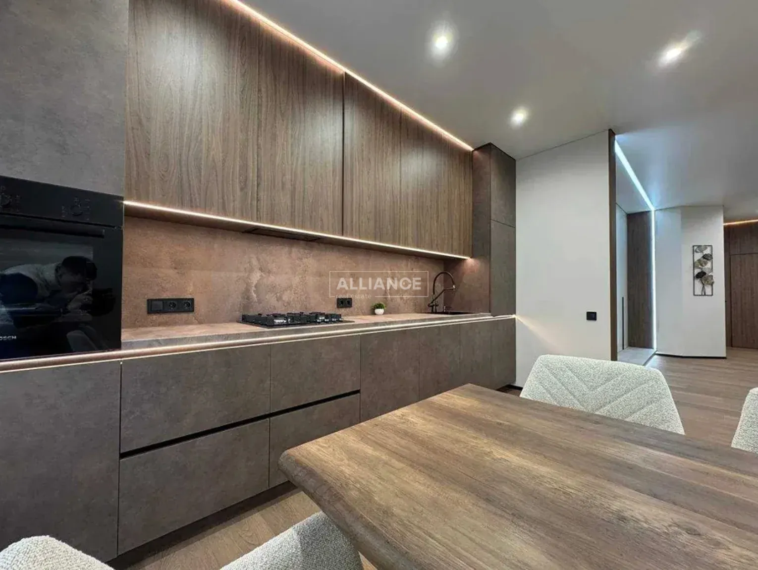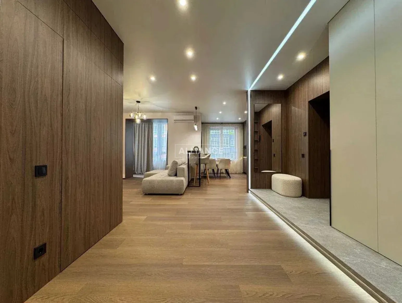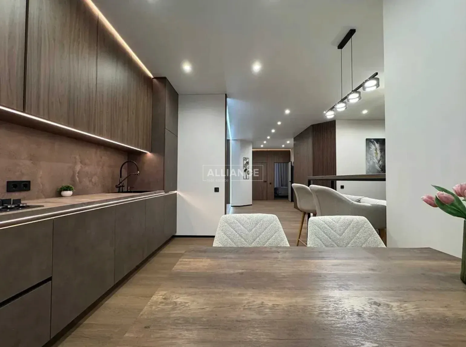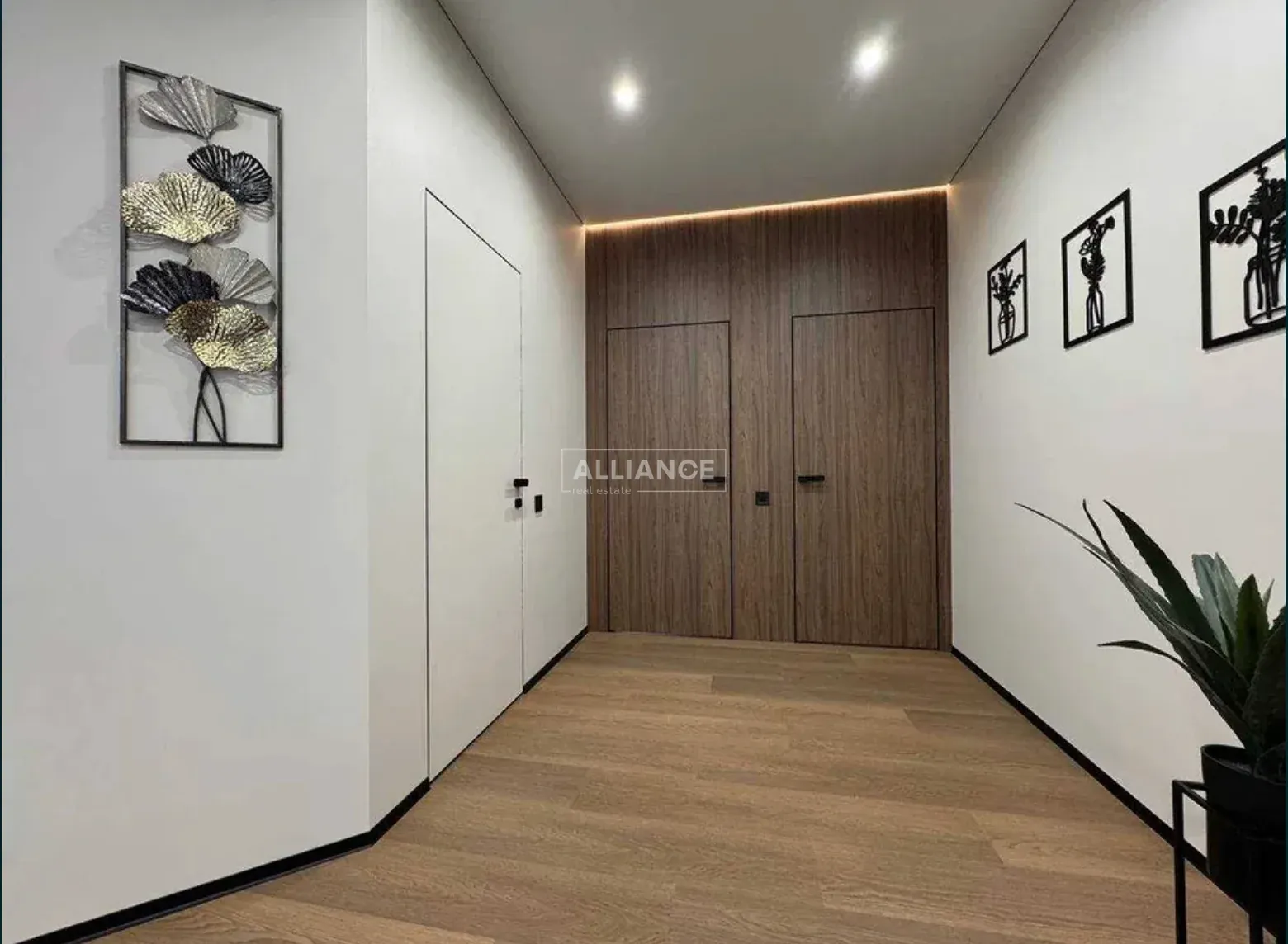 По всій квартирі встановлено підігрів підлоги. На підлозі сучасний та якісний кварц-вініл, на стінах сучасна декоративна штукатурка та панелі з підсвіткою.