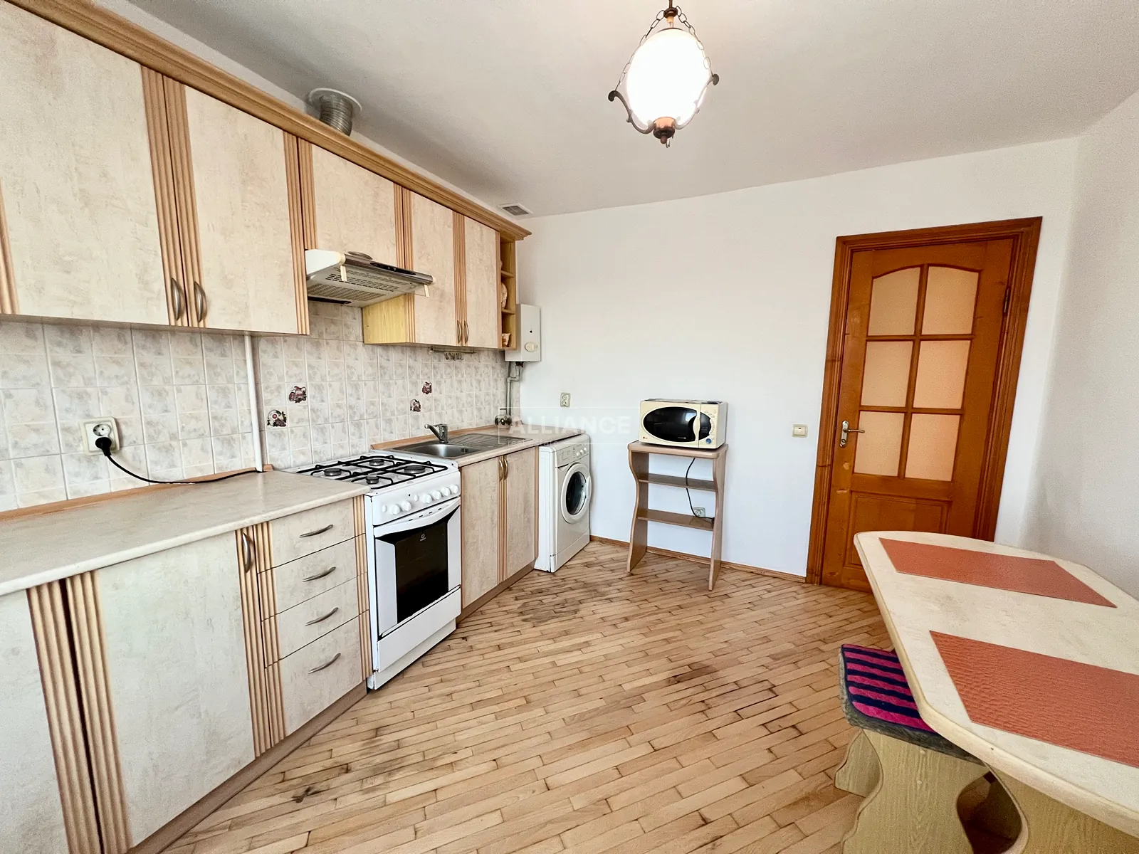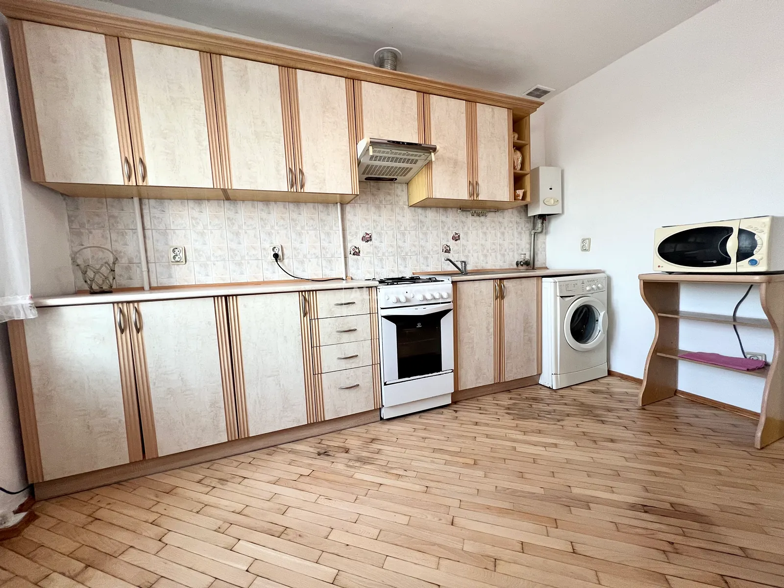 Всі меблі та техніка в квартирі залишаються (кухня, диван, шафи, прихожа, компʼютерний стіл, холодильник, пральна машинка, газова плита, телевізор, мікрохвильовка, газова колонка).