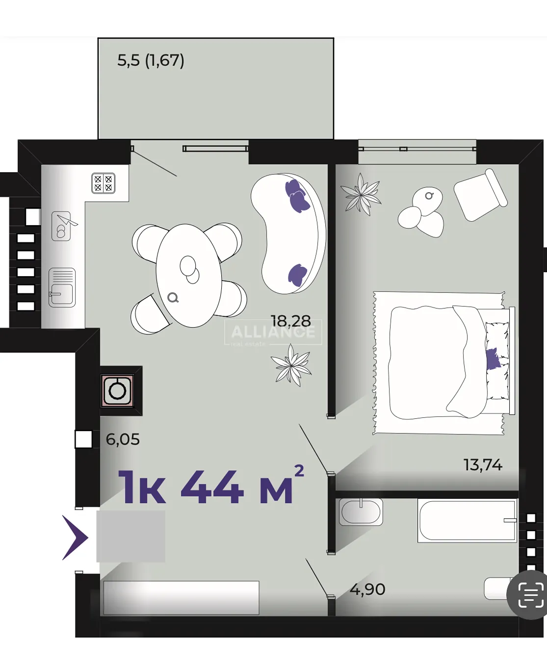 1-кімнатна квартира в ЖК Prostir, 44м2