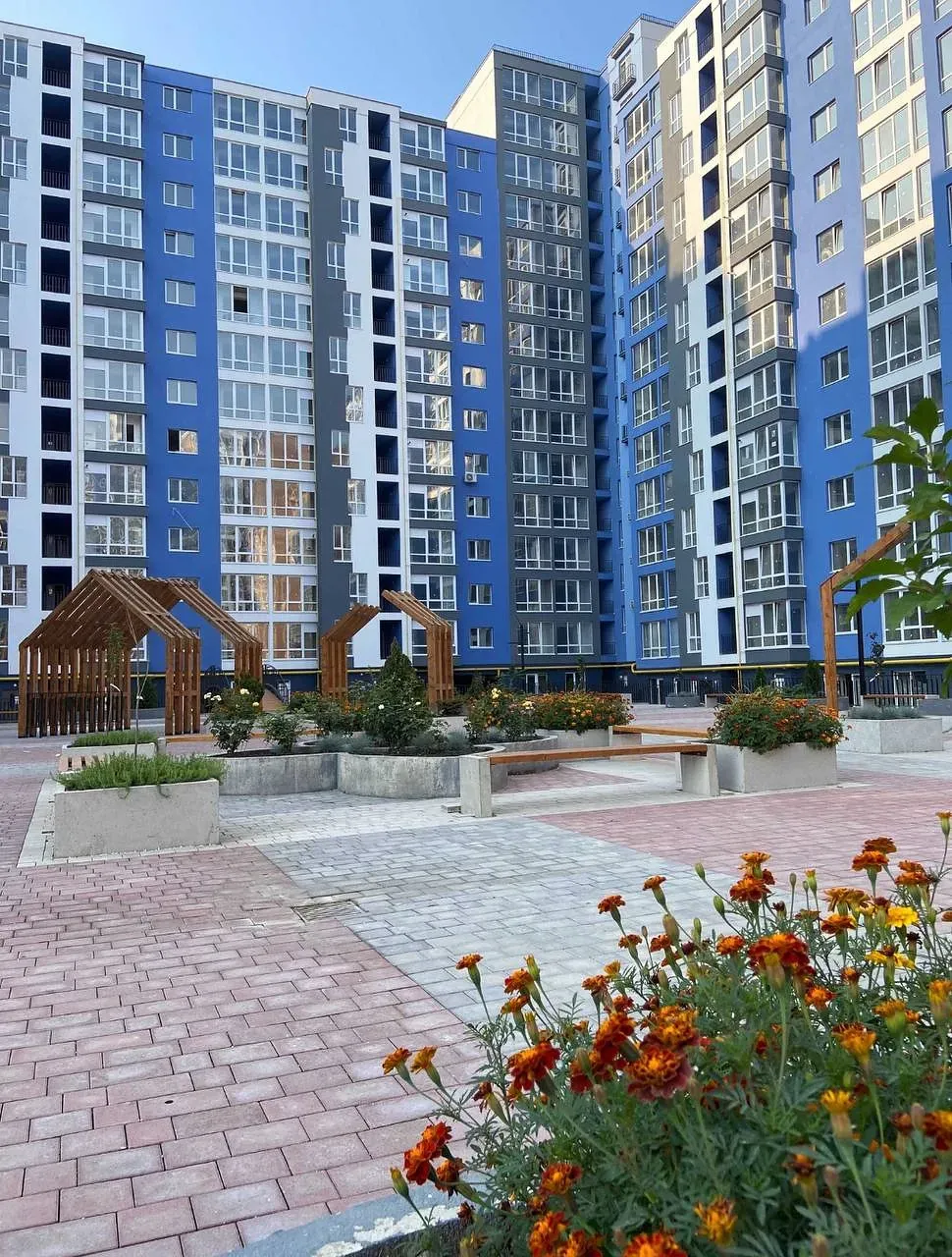 -великий внутрішній двір з відпочинковими зонами для дітей та дорослих.